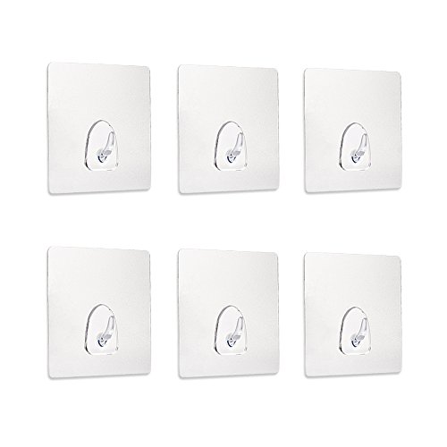 Adhesive Hooks, Icicle Transparent Reusable Heavy Duty Wall Hooks with No Scratch, Waterproof and Oil proof for Home, Bathroom, Kitchen, Refrigerator Door, Coats, Hats, Keys, Bags etc.(6 packs)