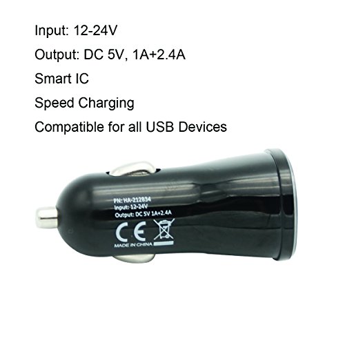 Dual USB ports: USB ports with different output currents of 1A (for Android phones) and 2.4A (for other smart phones, with smart IC to auto detect their output requirements)