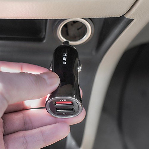 Hann 3.4A/17W Dual USB Ports Fast Car Charger for iPhone 7 6S Plus 6 Plus 6 5SE 5S 5 5C 4S, Samsung Galaxy S7 S6 Edge, Note 5 4 S5 Tab S,LG G5 G4,HTC,Nexus 5X 6P,Huawei,iPads Pro Portable[Black]