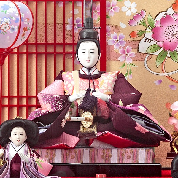 ・台座・屏風等には落ち着いた色目の雛人形セット。