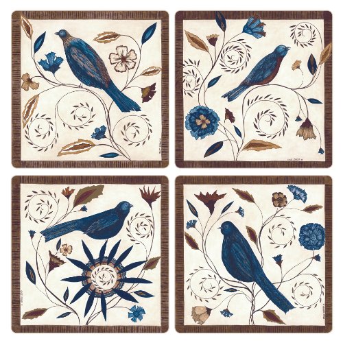 CoasterStone AS9913 Absorbent Coasters, 4-1/4-Inch, Jewel Birds, Set of 4