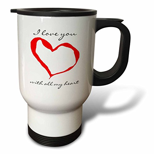 3dRose I Love You Heart Stainless Steel Travel Mug, 14-Ounce