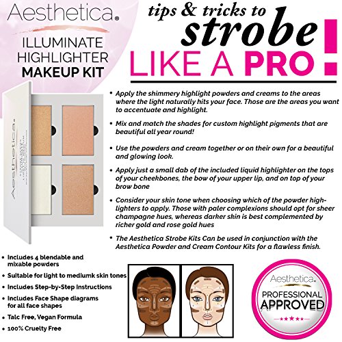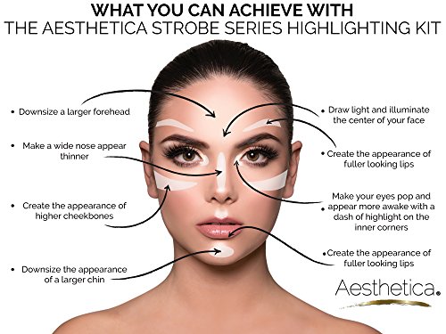 HIGHLIGHT YOUR BEST FEATURES – The Aesthetica Strobe Series Highlighting Kits enhance your face's natural beauty by drawing light to the areas you want to highlight. Strobing can help to create the illusion of higher cheekbones, a smaller forehead, a slimmer nose, fuller lips or more prominent eyes.