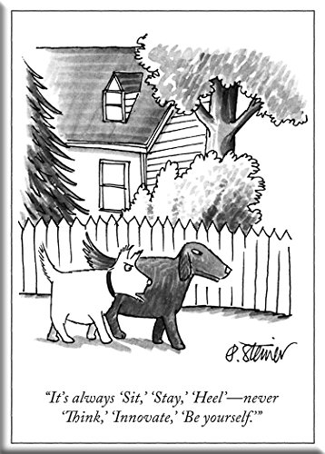 - It's always 'Sit,' 'Stay,' 'Heel'-never 'Think,' 'Innovate,' 'Be yourself' by New Yorker cartoonist Peter Steiner