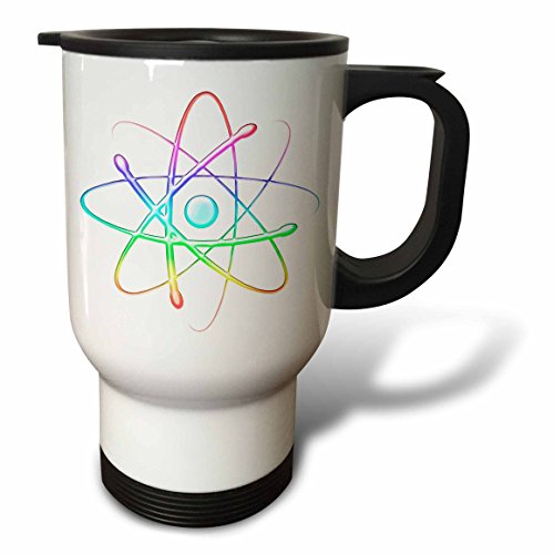 3dRose Rainbow Atom Symbol Stainless Steel Travel Mug, 14-Ounce