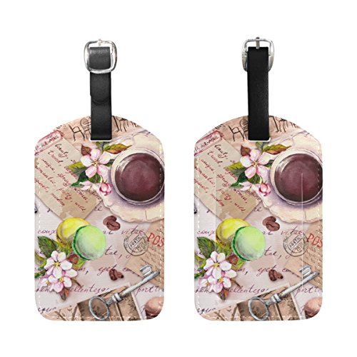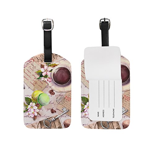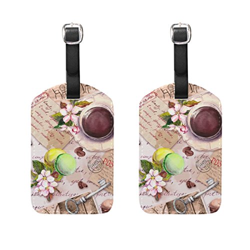 (My Little Nest)/Accessories/Luggage, Bags Travel/DIRECT FROM USA/Travel Luggage Tag Vintage Coffee Cup Cakes Flowers PU Leather Baggage Suitcase Tag Name Addres...
