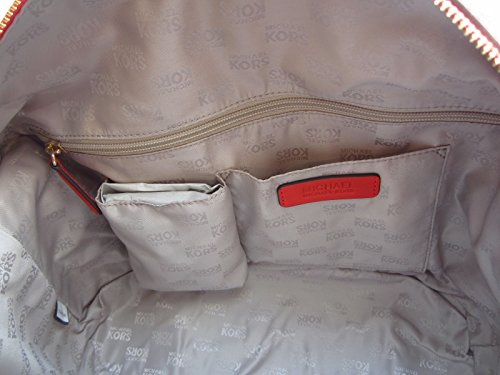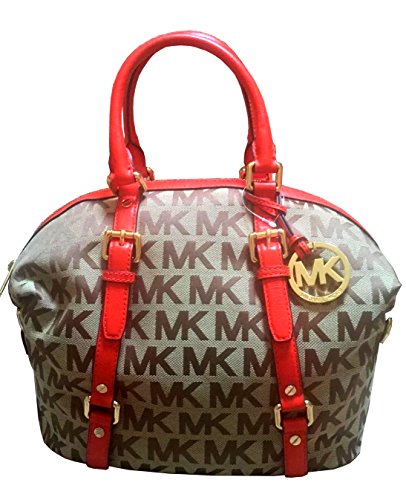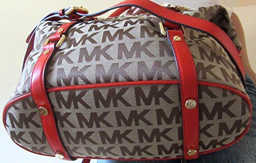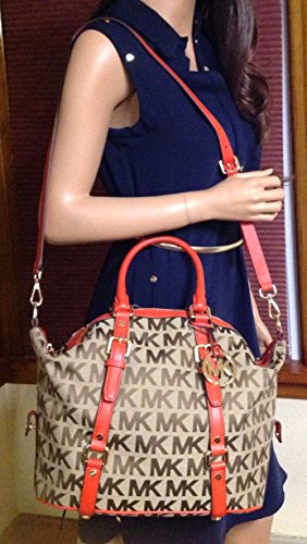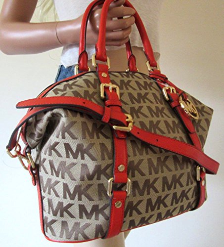 Michael Kors Bedford Medium Signature Satchel in Beige and Mandarin
