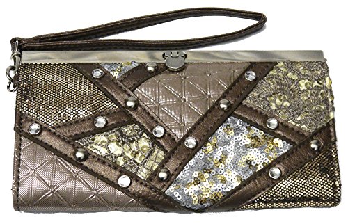 - Studs and Sequins Sparkling Wristlet Clutch Wallet with Wrist Strap.