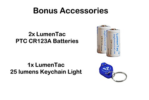 -. Feature : 453 lumens features latest Cree XML2 U3 LED, One of the most powerful EDC Penlight available / Compact and Light weight, perfect for everyday carry, perfect for holiday present / 4 Different Brightness Setting and Strobe: 453lm/0.9hr, 296lm/1.6hr, 33lm/10hr, 1lm/150hr / Include a bright 25 lumens Blue LumenTac keychain light, 2x LumenTac CR123A Batteries / Accessories: Titanium coated stainless steel clip (Black), Lanyard, spare O ring, Rigid Nylon Holster (with or without EAGTAC LOGO, both are authentic from different production batch)