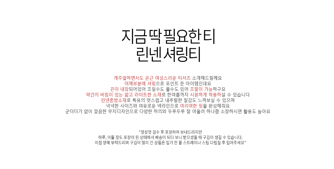 린넨 소재 특성상, 실 뭉침이나 잡사가 발견될 수 있으니 참고 바랍니다