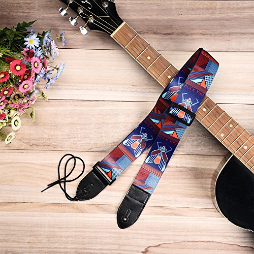 -. Feature : With the different kinds of personality patterns designed, this guitar strap is very eye-catching! It will help you to attract more attention during your performance! / Fine workmanship, comfortable to wear, do not fade. / Adjustable length 90-155cm / 35.43-61.02inch. Width: 5cm / 1.97inch. / A high quality strap buckle, easy to install, easy and comfortable to use. / Suitable for guitar, electric guitar, bass and more.
