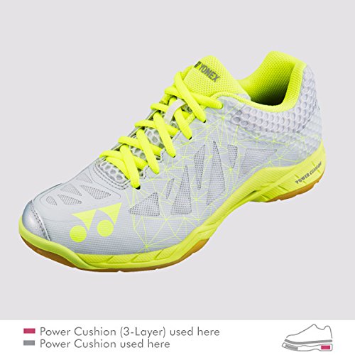 Binding : Apparel Product Description The Yonex Power Cushion Aerus badminton shoe is perfect for anyone indoor court athlete that wants to feel as light on the court as possible. Breathable and eye catching, the Aerus has a P.U. Leather and Double Russel Mesh upper with vents to help your feet breath no matter the conditions. Double Russel Mesh is an ultra fine mesh that is extremely lightweight and durable. It provides eight times more air-exchange for releasing moisture than ordinary mesh fabric. Hyper msLite in the midsole creates a 10% lighter shoe (when compared to original high-performance midsole). The all rubber sole dramatically increases traction so that you can take on any shot that comes at you and reach all corners of the court. 0