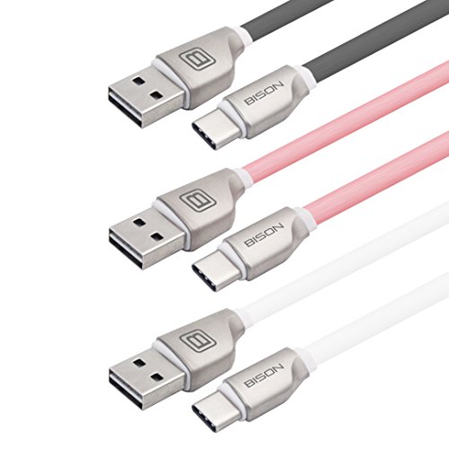 -. Title : [3 Pack] Bison USB Type C to USB 2.0 Quick Charge 2.4A and Data transfer Cable, Zinc Alloy Blade-shaped Original Design for LG G5,LG G6, HTC 10, One Plus 3 and more (3.3ft) (Gray, Pink & White)