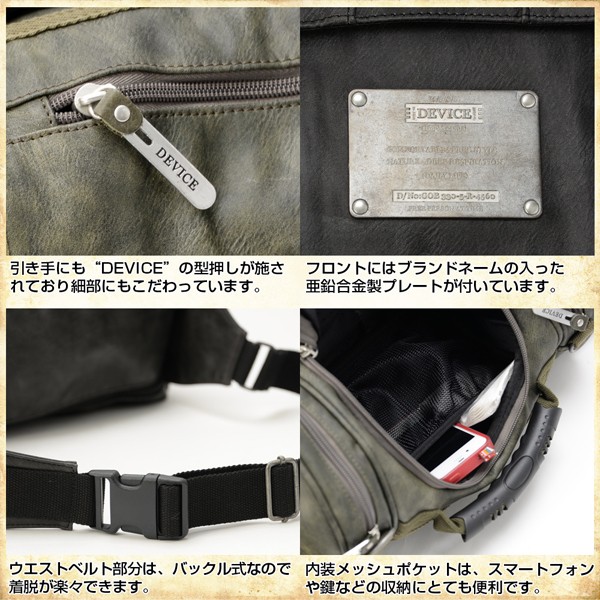 ※【ネイビー】の次回入荷、2018年1月中旬 予定です。DEVICE4WAYチェンジが見事!オトナ・ミリタリーでブチ決め!!タフが自慢!無造作に使って欲しい!ヴィンテージ級のキャンバス素材を使用した一流のストリート・ファッション!4WAY DRUM MAD MULTI BAG【巻く】【背負う】【掛ける】【持つ】ヴィンテージソフト・マテリアルで攻めるボディーアメニティ&マルチスタイル!!大人の遊びスタイル・エントリー”ドラム型”DEVICE!四方に配されたポケットと、チェンジベルトの機能性がクールにキマる!!【各ポケットは収まりの良いポジションポケットとしてGood!】【DEVICEクオリティをところどころにインサート!】■サイズ:約(縦)17.5x(横)32.5x(マチ)15.5cm