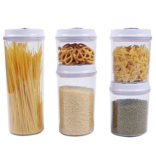 - VERSATILE: Store your favorite foods safely into these efficient containers. With 5 different sizes for edibles of all shapes, sizes, and volumes, you won't have to worry about jamming your edibles into containers. 5 pcs Set include 1 Tall, 1 Medium, 2 Small and 1 Mini Container.