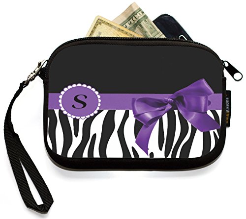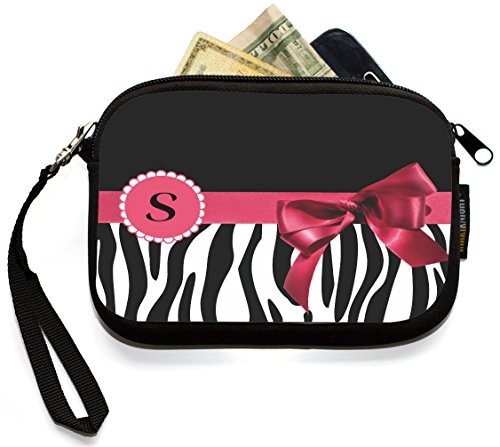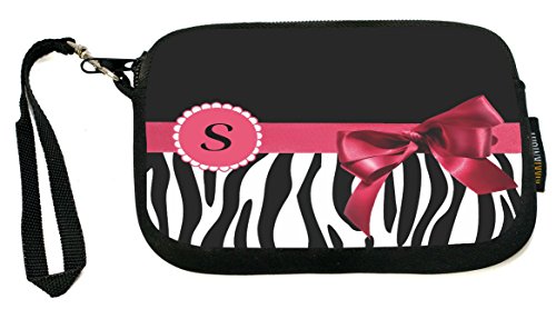 -. Title : UKBK Letter " S " Sky Blue Zebra Bow Monogram - Neoprene Clutch Wristlet with Safety Closure - Ideal case for Camera, Cell Phone, Gameboy, Passport, Cosmetics case, Universal Cell Phone Case etc..