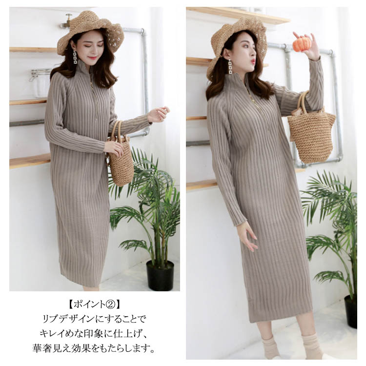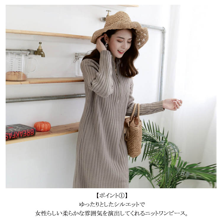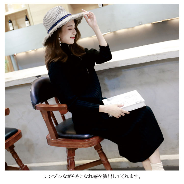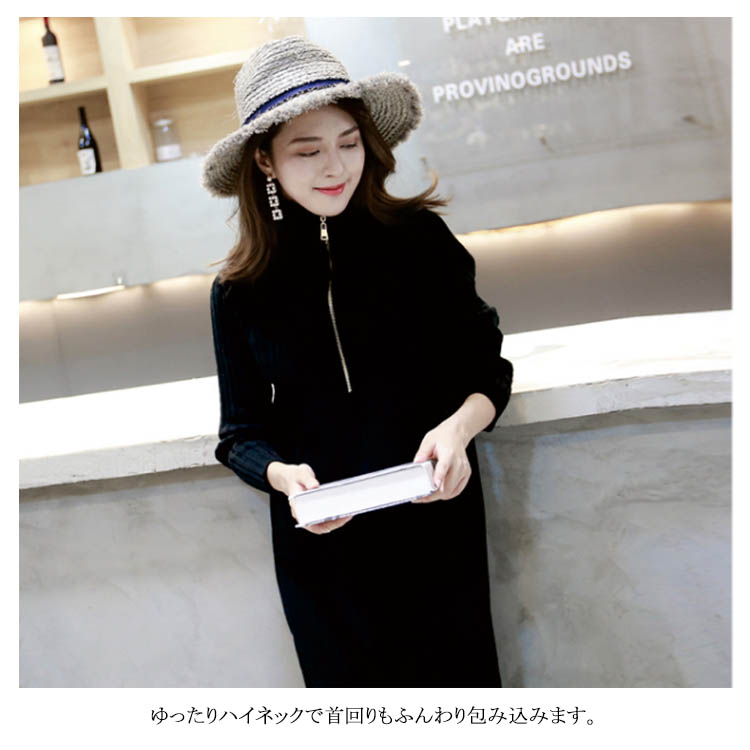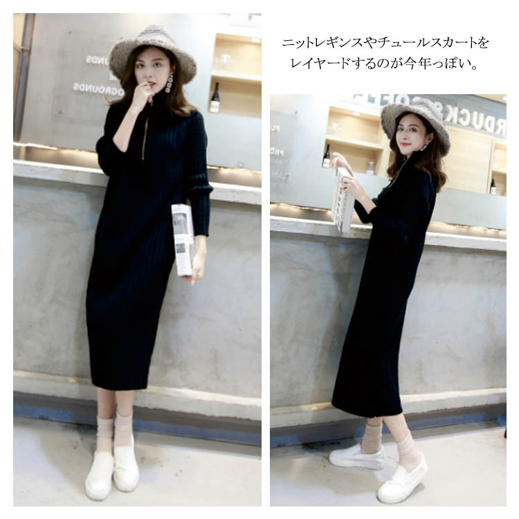 | 今年っぽいニットワンピース♪シンプルながらもこなれ感を演出してくれます。ゆったりハイネックで首回りもふんわり包み込みます。ニットレギンスやチュールスカートをレイヤードするのが今年っぽい。 | |