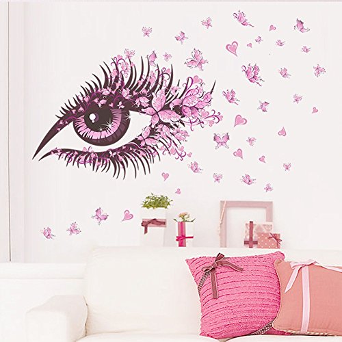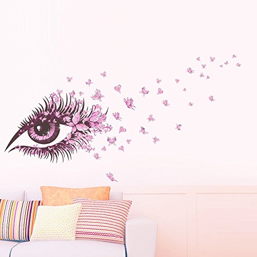 Amaonm Beautiful Pink Eyes & Flying Butterfly Wall Decal Removable DIY Art Decor Wall Stickers & Murals for Girls Kids Bedroom Living Room Nursery Room Offices TV Background