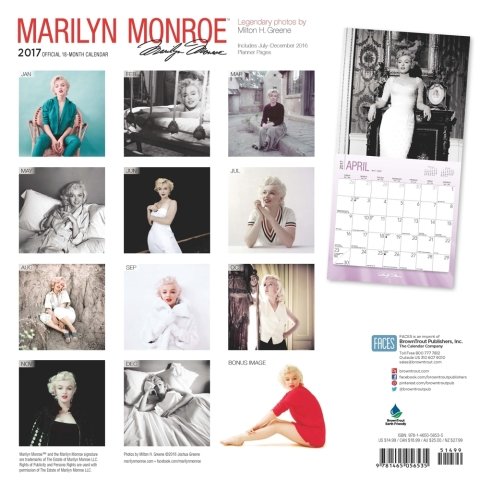-. Binding : Office Product -. Brand : 2017 Calendars -. Feature : 2017 Calendar featuring beautiful images for every month of the year. / Includes Holidays and Observances. / Keep your appointments and Birthdays organized in one place! / Perfect for office spaces, bedrooms, classrooms and more! / Makes a great gift for friends and family! -. Label : 2017 Calendars -. Manufacturer : 2017 Calendars -. MPN : 886860123475 -. PackageQuantity : 1 -. PartNumber : 886860123475 -. ProductGroup : Office Product -. ProductTypeName : OFFICE_PRODUCTS -. Publisher : 2017 Calendars -. Studio : 2017 Calendars -. Title : 2017 Marilyn Monroe Calendar - 12 x 12 Wall Calendar