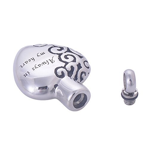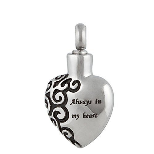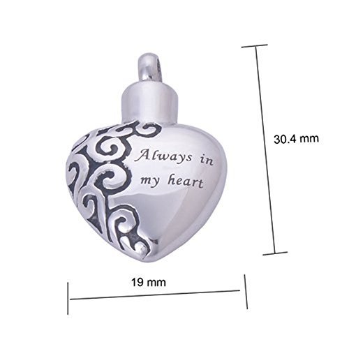 -. Binding : Misc. -. Brand : ZARABE -. Color : SILVER -. EAN : 0712069316175 -. Feature : Material: Stainless Steel / Pendant size: 30mmx18mm / Heart shaped pendant contains a cavity which can be filled with your loved one's ashes / Good to have when you want your love one next to your heart / Memorial Ashes Urn Pendant WITH Chain & velvet bag -. Label : TRY -. Manufacturer : TRY -. MPN : ZAR-3541 -. PackageQuantity : 1 -. PartNumber : ZAR-3541 -. ProductGroup : Pet Products -. ProductTypeName : PET_SUPPLIES -. Publisher : TRY -. Size : Pendant size: 30mmx18mm -. Studio : TRY -. Title : Zarabe Pet Memorial Urn Pendant Necklace "Always in My Heart" & Chain- Cremation Jewellery … -. UPC : 712069316175