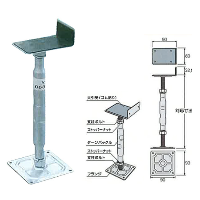 ●ターンバックル方式で思い通りに高さを調整できます。大引受にゴム製の板を貼り、木材(大引)との接触音防止に配慮しています。