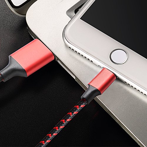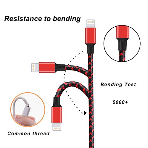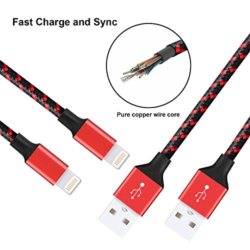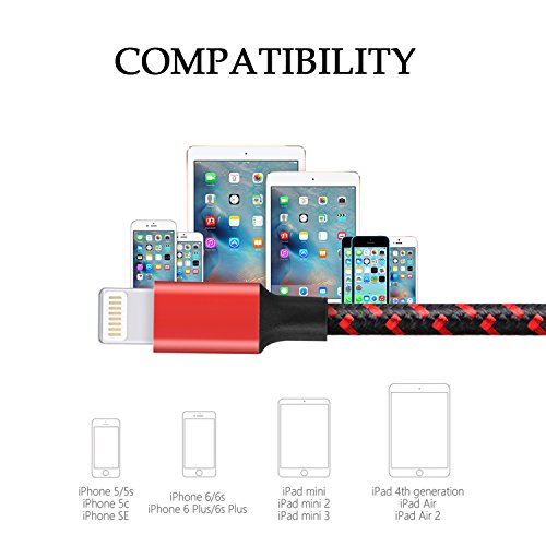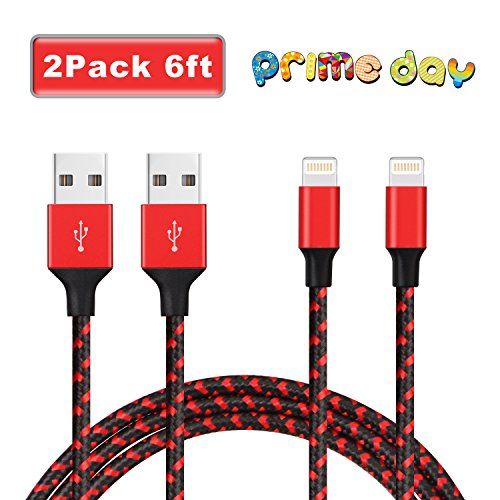 iPhone Cable Raylix Charging Wire Nylon Braided Lightning Cable 2Pack 6ft Cables for iPhone 7 7 Plus SE 6 6s 6 Plus 6s Plus 5c 5s 5 iPad Air Mini iPod Touch (Black & Red)