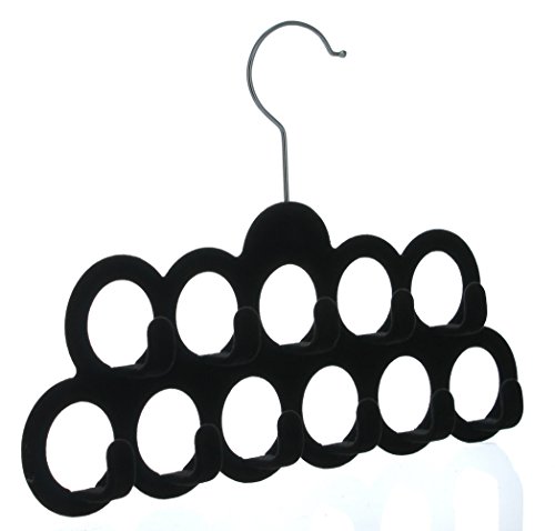 - Title : Flocked Black 11 Hook Belt & Scarf Hanger Tie Rack Clothing Accessories