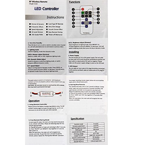 SUPERNIGHT LED String Lights Mini Controller Dimmer with 11 Keys Radiofrequency RF Wireless Remote Control for Single Color LED Strip Lights -- DC 5V - 24V ,12A