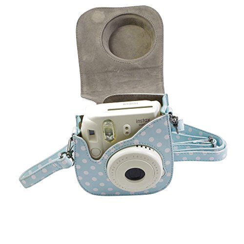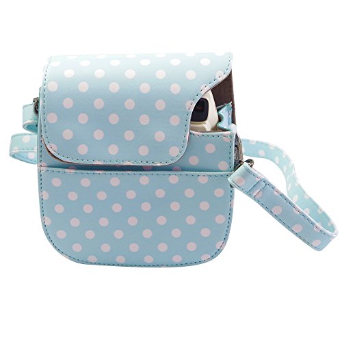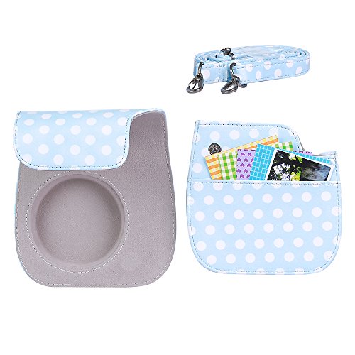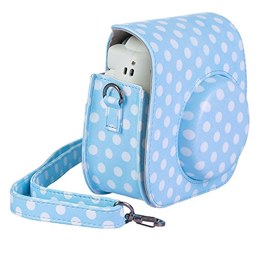 Alohallo Instax Mini 9/ 8/ 8+ Case PU Leather Carring Bag for Fujiflim Instax Mini 8/ Mini 8+/ Mini 9 Instant Film Camera with Shoulder Strap and Pocket (Blue white dots)