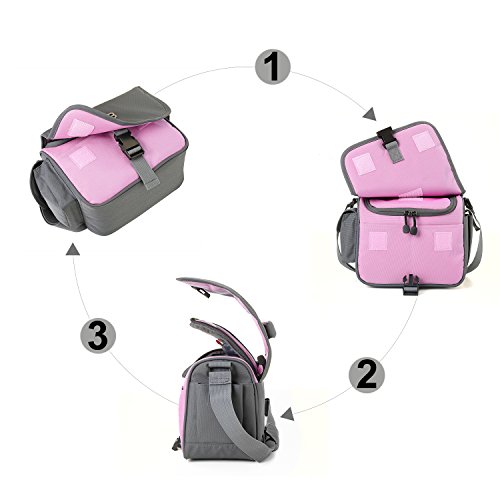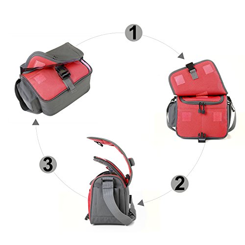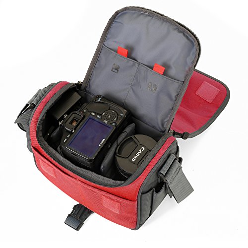 2 Vordere Taschen,1 Hauptfach und 2 Seitentaschen bieten Platz fur 1 SLR Kamera,1 Wechselobjektiv, Ladekabel, Ersatzakku, SD-Karte usw.