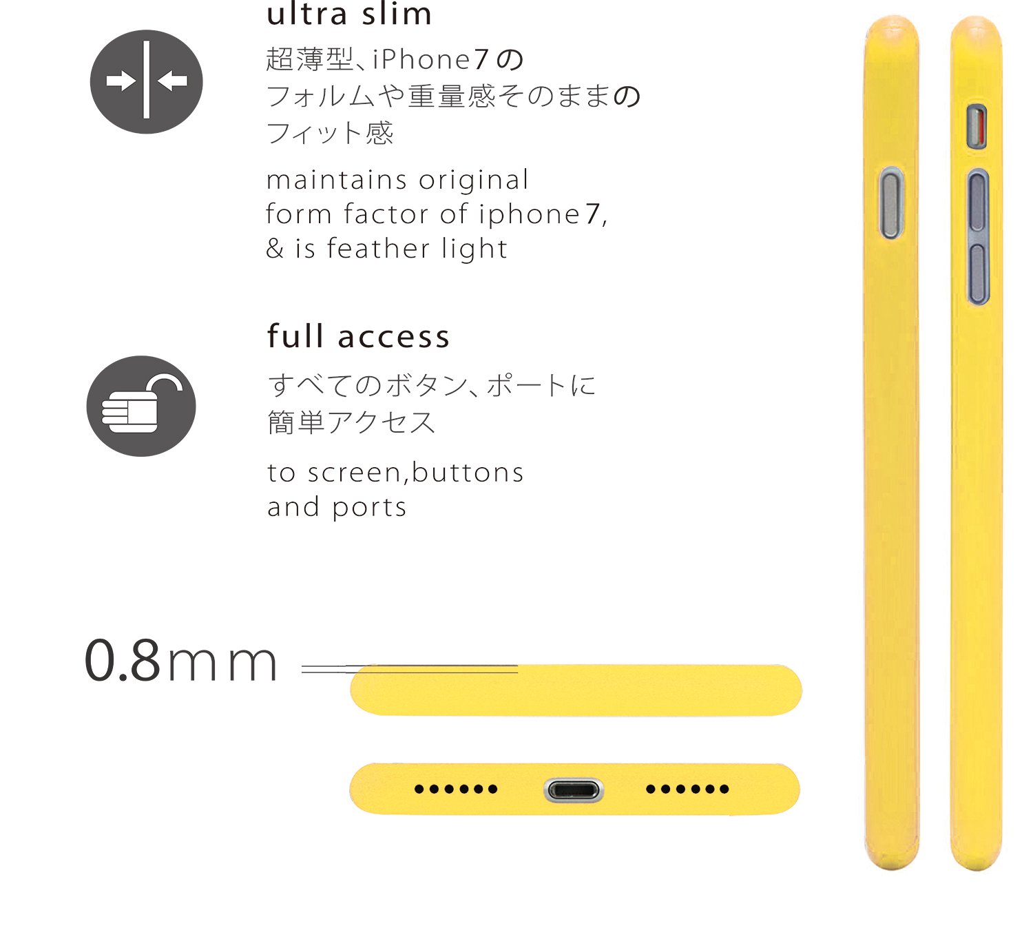 By setting the thickness to 0.8 mm, while maintaining the protection performance, we realized the feeling of fitting as if you could forget the case with the form of the smart iPhone and the weight feeling intact.