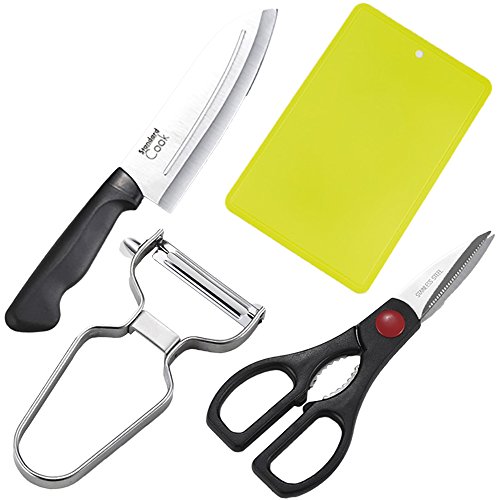-. Feature : [サイズ]包丁:28.7cm(刃渡り16.5cm) / [材質][包丁]刃部:ステンレス刃物鋼/ハンドル:ABS樹脂(耐熱温度80℃)/[ピーラー]刃部:ステンレス刃物鋼/本体:ステンレス鋼/シートまな板:ポリプロピレン(耐熱温度100℃) / 生産国:日本 / 包丁:28.7cm(刃渡り16.5cm)/キッチンハサミ:1.5x20.5x7.4cm/ピーラー:1x6.6x12cm/シートまな板:0.15x21x32cm / [重量]包丁:95g/キッチンハサミ:85g/ピーラー:40g/シートまな板:80g