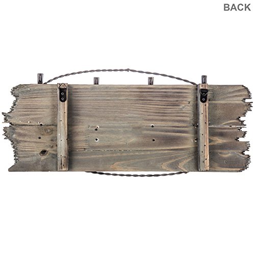 Featuring an MDF backing with broken edges, this cool piece offers a twisted metal oval, metal stars, and four resin pistol shapes that serve as coat hooks.