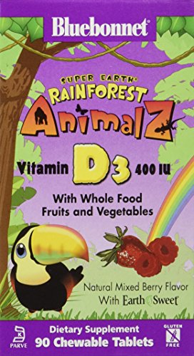 -. Title : Bluebonnet Super Earth Rainforest Animalz Vitamin D3 400 IU Chews, Mixed Berry, 90 Count