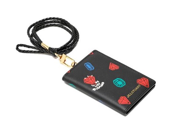 부드러운 소가죽 소재로 JILLSTUART 고유 쁘띠 다이아몬드 프린팅과 금속 로고로 포인트를 준 목걸이형 카드홀더 입니다.