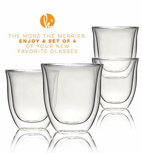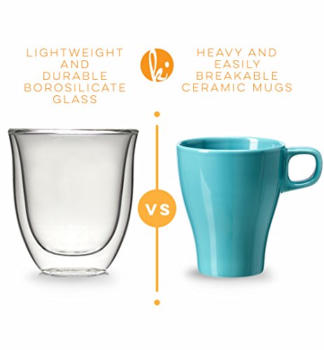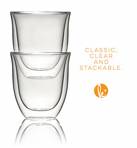 Double wall thermo resistant glass material Durable borosilicate glass Simple and modern design Holds 6 ounces