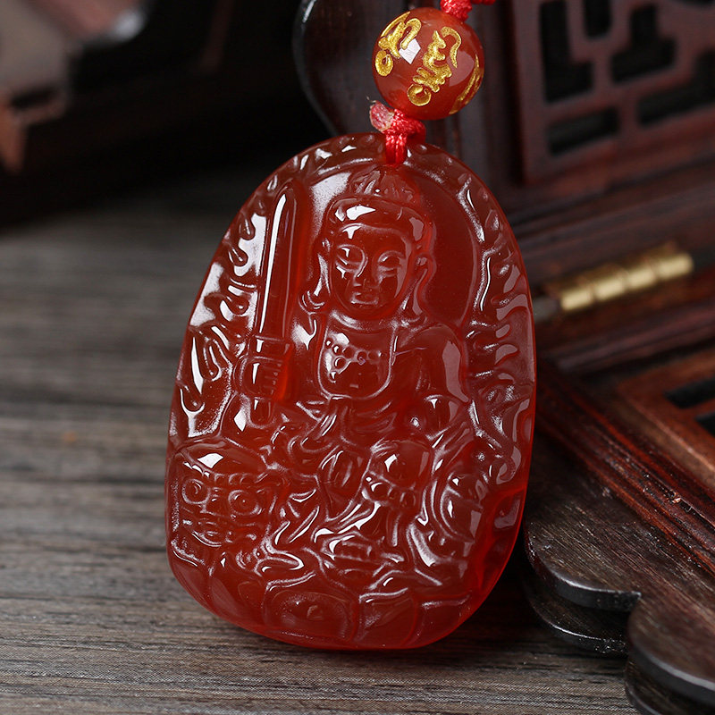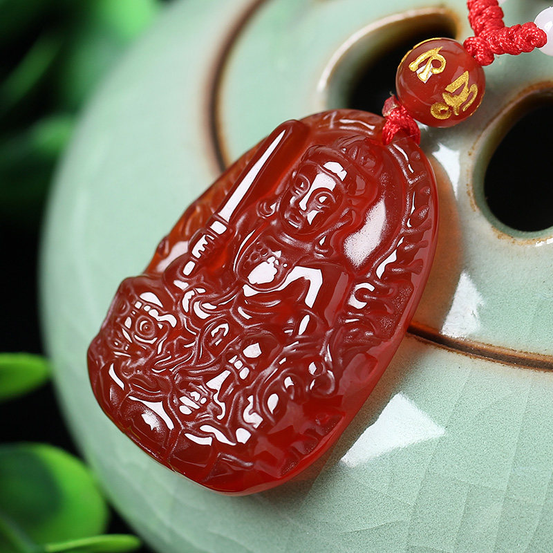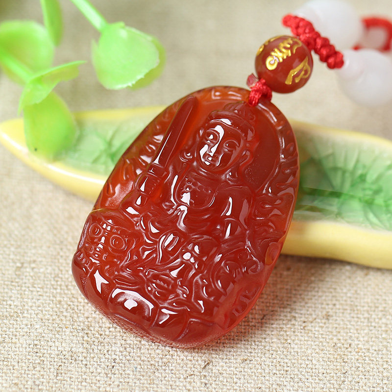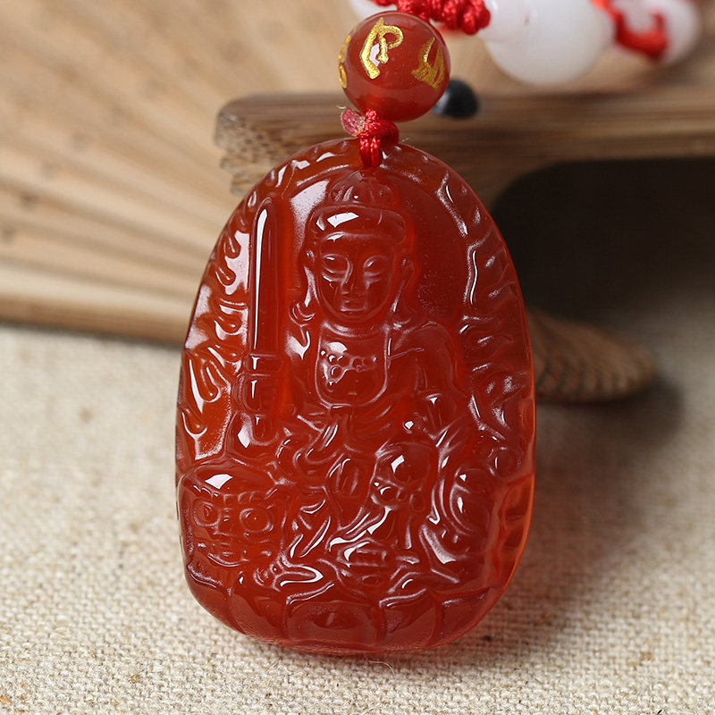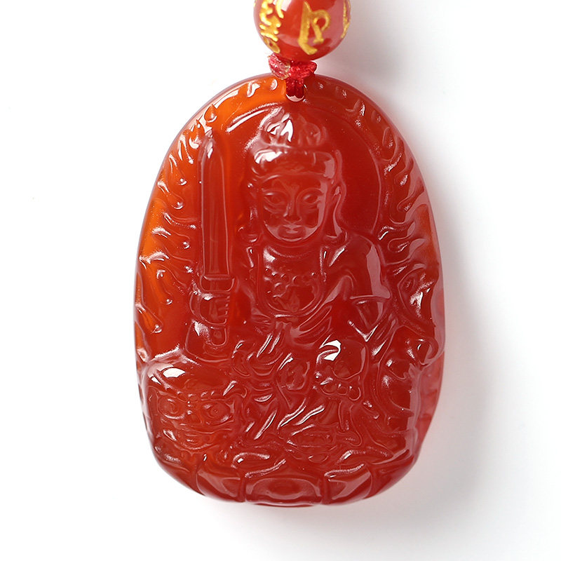 开光天然红玛瑙文殊菩萨十二生肖属兔本命佛守护神吊坠男女款