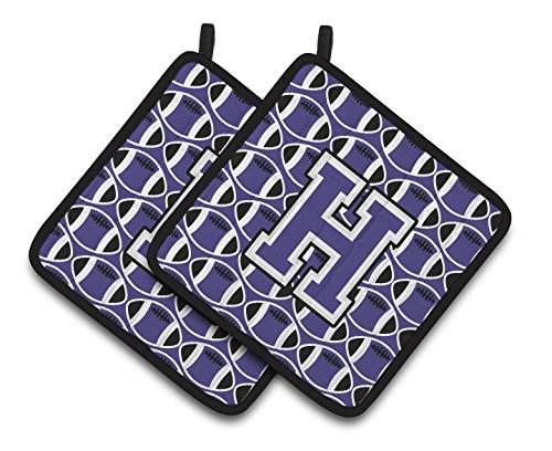 Caroline's Treasures Letter H Football Purple & White Pair of Pot Holders CJ1068-HPTHD, 7.5HX7.5W, Multicolor