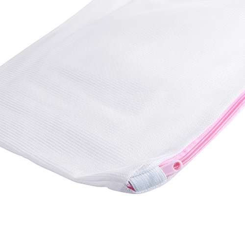 Made of durable nylon mesh with zipper cover at the end. Dimension (Bag): 17.00 (L) x 8.50 (W) x 0.80 (H) Inches (foldable status); (Interior mesh strap): 36.00 (L) x 11.00 (W) Inches. This can protect the pant / jean / skirt from the tumble of washing machine in order to avoid the snags, tangles, tears and stretching. This would be used as travel organizer bag and packed in luggage suitcase as well. Be careful to have the pant / jean in stable position on mesh strap and insert into mesh bag before washing. 0 |