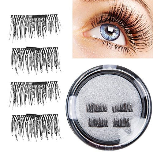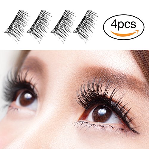 False Magnetic Eyelashes 3D Reusable Fake Eyelashes, 2 Pairs 4 Pieces for Deep Set Eyes & Round Eyes Women's Makeup Natural Look 002