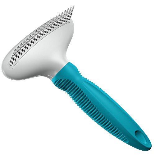 Studio : Topet/Enrych Publisher : Topet/Enrych Binding : Misc. Product Description DE shedding rake made of Gray abs plastic with a Teal rubberized handle. The stainless steel pins (21) will penetrate deep into the dogs coat to remove the loose and dead hair. This is a great option to reduce unwanted hair that you will find on your floor and furniture at home. Will not cut hair healthy hair. The absolutely best way to remove loose and dead hair on your dog. 0