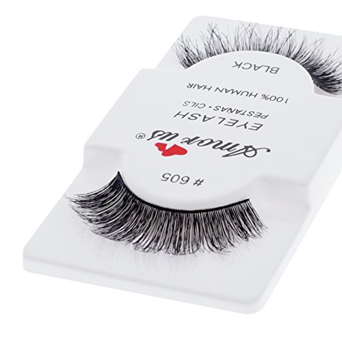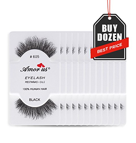 Amorus 12 Pairs Multipack #605 False Eyelashes Dozen Set 100% Natural Hair Black Handmade Comfortable Reusable Strip Fake Lashes Pack
