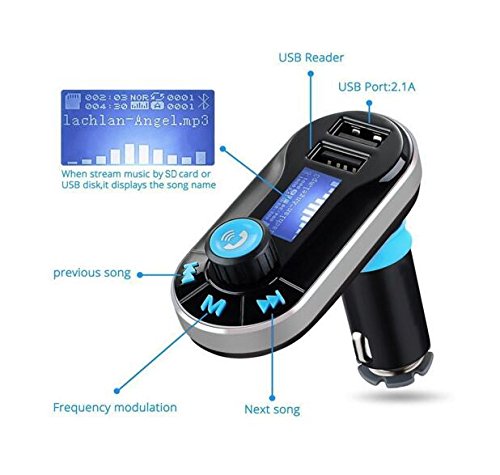 Swiss Part -Wireless Bluetooth Fm Transmitter Adapter Kit In-Car Radio with Two dual USB Port Charger Hands-free AUX Input MP3 SD Compatible with Bluetooth enabled Mobile Devices, Smartphones, Tablet PC etc. Specifications: BLUETOOTH IC: CSRBC8635Stereo(CSR 4.0) Frequency: 87.5-108.0 MHZ Frequency Stability: ±10ppmI (0℃- 60℃) Output Frequency: 20HZ-20KHZ Supply Voltage : 12-24V USB Charger output: 5V/2.1A Music Format: MP3 Format / WMA USB (Maximum support): 32GB Micro SD (Maximum support): 32GB Transmit Distance: >10M Operating system: Winxp/Winvista/Win7/Win8 MP3 S/N RATIO: 60-70dbm MP3 BITRTE: 32KPB-320KPBS SNR: ≥85dB. LCD Screen - 1.1 inch Audio Input - 3.5mm Stereo Jack Package Included: 1* FM Transmitter 1* 3.5mm Audio Cable 1* Remote Control 1* User Manual 0 |