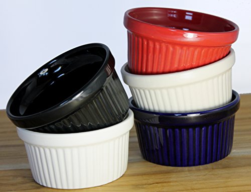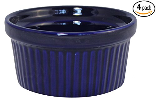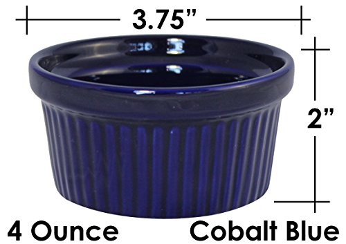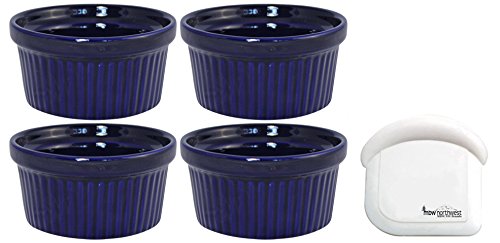 ITI Ceramic Stackable Baking Ramekins / Condiment Sauce Cups with Pan Scraper, Medium / Large, 4-Pack (4 Ounce, Cobalt Blue)