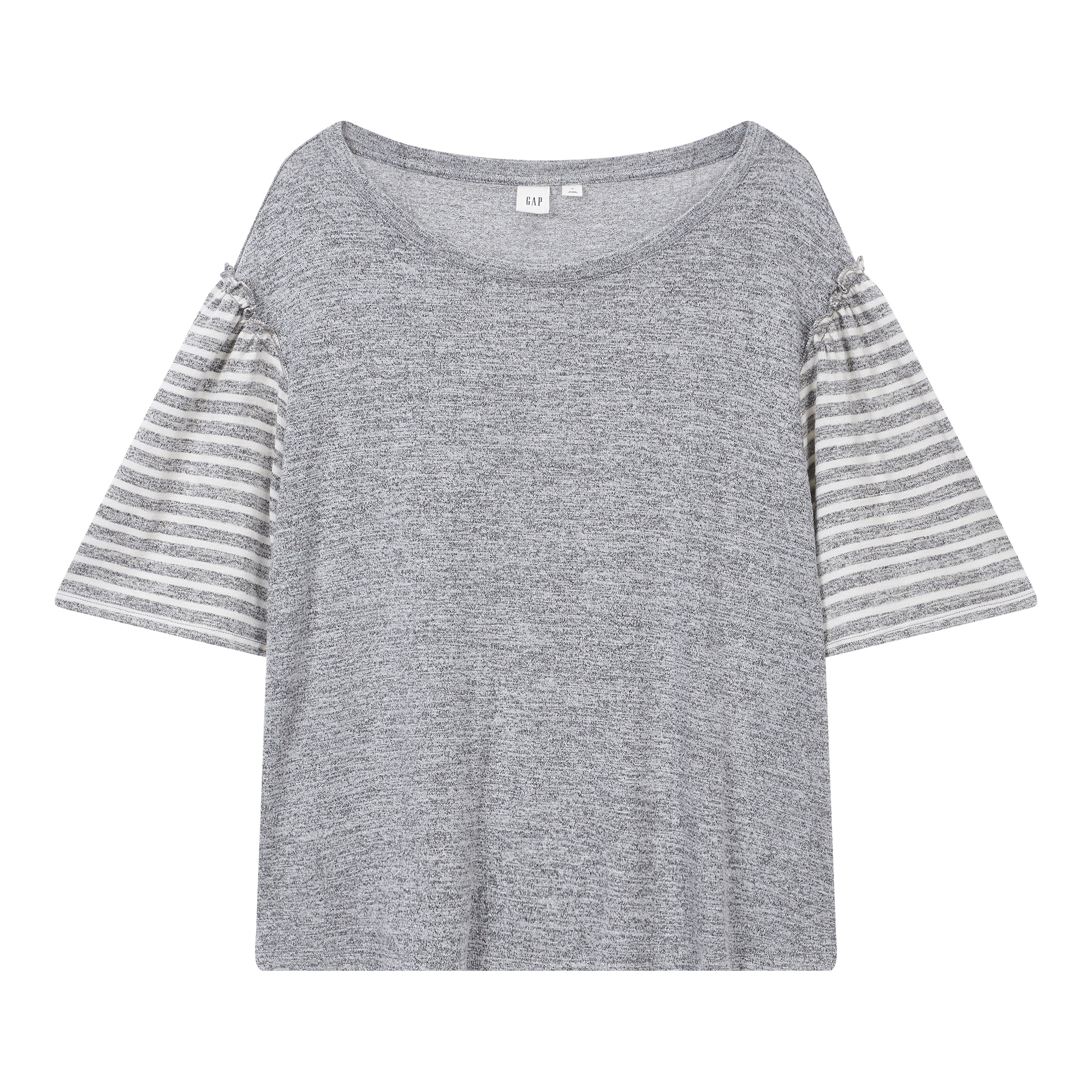 컬렉션 : 2018 Spring/Summer 디자인 포인트 : - "플러터 슬리브가 특징인 반팔 티셔츠" -"도톰한 소프트스펀 소재로 편안한 착용감을 자랑하는 아이템 " 스타일링 추천 : 다양한 워싱의 데님 팬츠 혹은 아우터/가디건류의 이너 아이템과 매치하여 캐쥬얼룩 스타일링을 할 수 있음