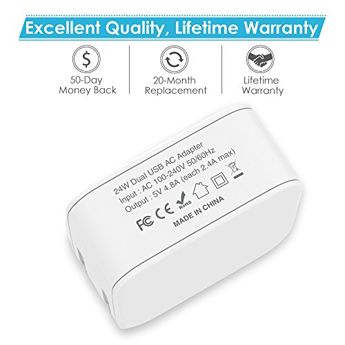 - 24W/4.8A Dual USB output lets you charge any two smartphones or tablet devices simultaneously, at top speed.