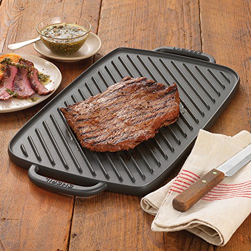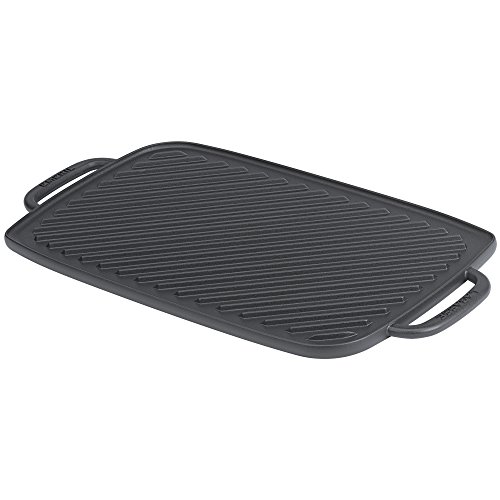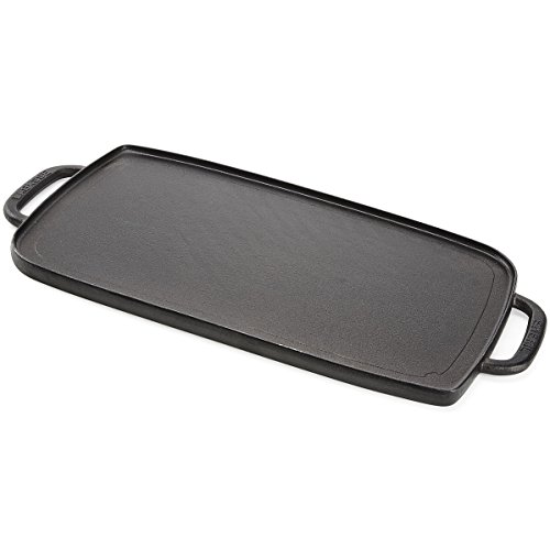 -. Title : Emeril Lagasse 62985 Pre-Seasoned Cast Iron Double Burner Reversible Grill/Griddle, Medium, Black