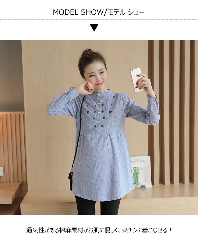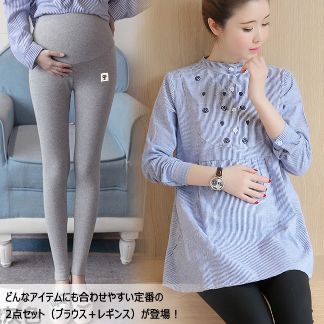 | 商品名 | 2点セット セットアップ リネンブラウス 刺繍シャツ マタニティ服 棉麻ブラウス レギンス レディース 長袖 ストライブ 秋新作 |