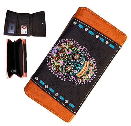 Studio : Western Fashion Publisher : Western Fashion Binding : Apparel Product Description Montana West® Colorful Sugar Skull Secretary Style Organizer Wallet - Brown