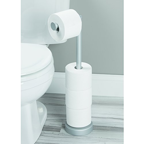 InterDesign Metro Rustproof Aluminum Free Standing Toilet Paper Roll Holder for Bathroom - Silver